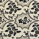 A high end woven designer upholstery weight fabric in beige and black tones. Suitable for sofas, chairs, pillows, headboards, designer bags and other upholstery craft projects.
